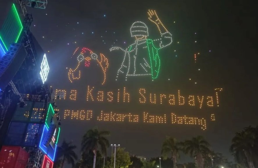 Sebanyak 1.500 drone diterbangkan secara serentak, membentuk berbagai visual dinamis yang terinspirasi dari elemen permainan PUBG Mobile, mulai dari pesawat tempur hingga adegan ikonik dalam gim tersebut.