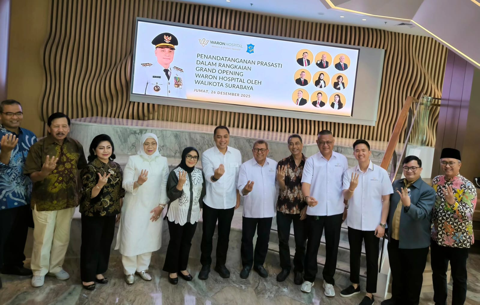 Penandatanganan prasasti ini menjadi simbol komitmen bersama antara Pemkot Surabaya dan manajemen Waron Hospital dalam memperkuat ekosistem layanan kesehatan kota, sekaligus mendukung Surabaya sebagai pusat rujukan layanan kesehatan modern yang berdaya saing di tingkat nasional dan regional.